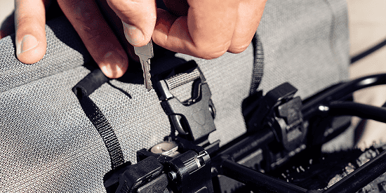 Het nieuwe QL2 Lock van ORTLIEB is een praktische oplossing om fietstassen extra te beveiligen: klik het slot moeiteloos op de fietstas, bevestig de tas zoals gewoonlijk aan de fiets en draai de sleutel om de tas te vergrendelen. Simpel en eenvoudig in gebruik!